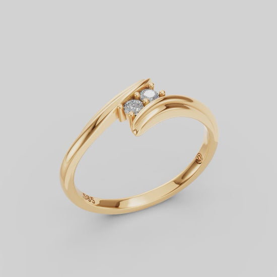 Un diseño cruzado que envuelve suavemente dos diamantes centrales, simbolizando unión y equilibrio. Una pieza delicada y elegante, ideal para los que gustan de un estilo moderno con significado.