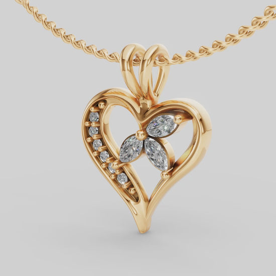 Un corazón que brilla con la flor de diamantes en su centro. Con un diseño limpio y elegante, este colgante es un detalle romántico que nunca pasa de moda.
