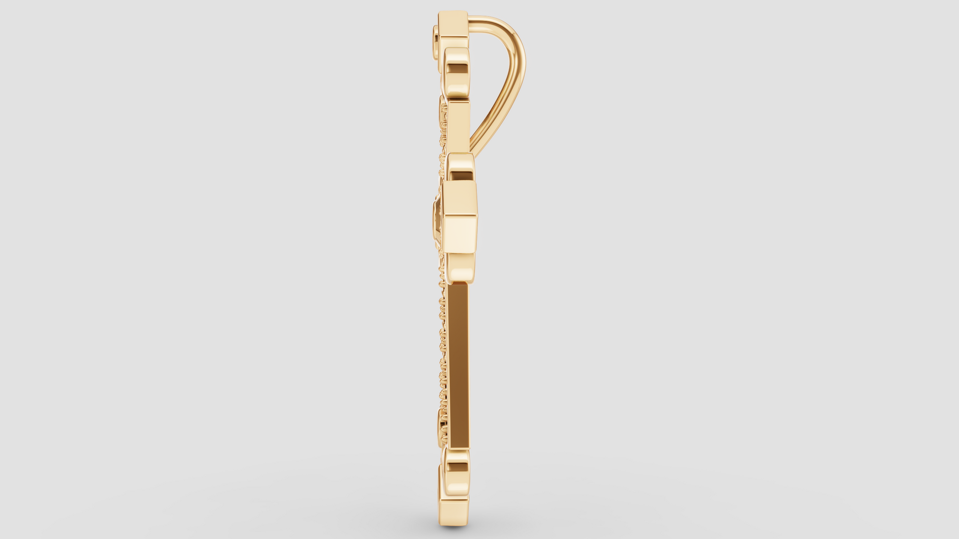 Una pieza refinada en oro, con brazos elegantemente estilizados y decoraciones simétricas. Las gemas centrales añaden un punto de luz que simboliza claridad y renovación.