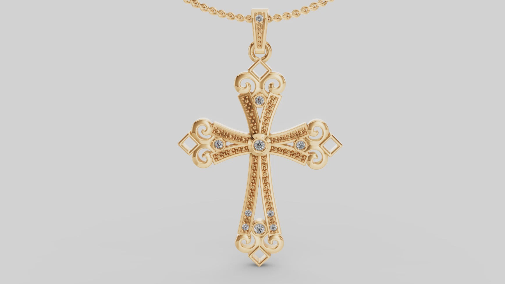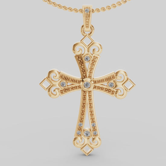 La cruz de lis simboliza la pureza, la luz y la perfección. Exprese la fe más profunda con este hermoso colgante de diamantes.