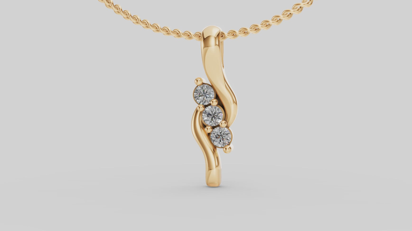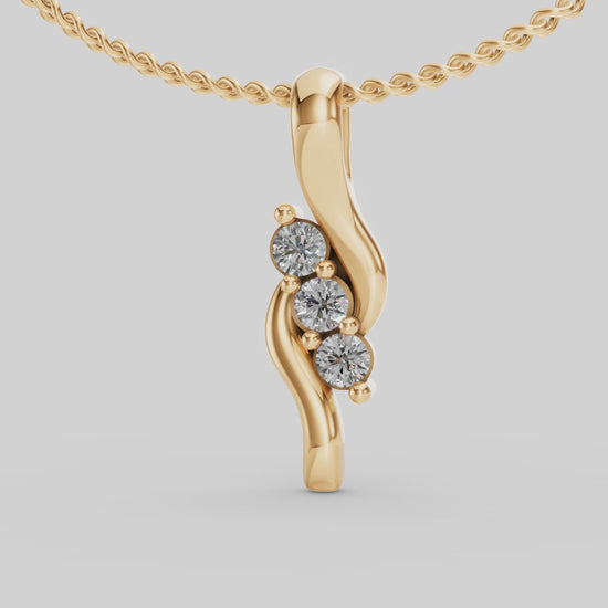 Un colgante minimalista y elegante, donde tres piedras luminosas se integran en un trazo dorado fluido. Ideal para quienes buscan una joya refinada y versátil.