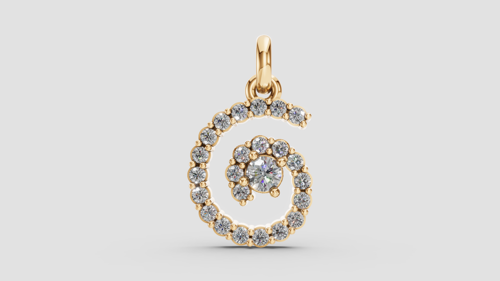 Un deslumbrante colgante en forma de espiral cubierto por diamantes. La espiral es un símbolo del cambio constante, la transformación y el desarrollo