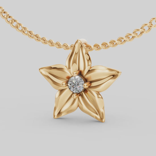 Una pieza encantadora y atemporal. Inspirado en la belleza de la naturaleza, este colgante en forma de flor destaca por su delicado diamante central.