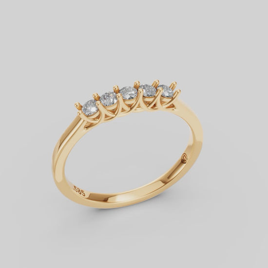Una interpretación discreta de los clásicos anillos de eternidad. La línea de diamantes enmarcada por garras cruzadas crea un efecto de profundidad y luminosidad. Una pieza versátil, perfecta como complemento cotidiano.