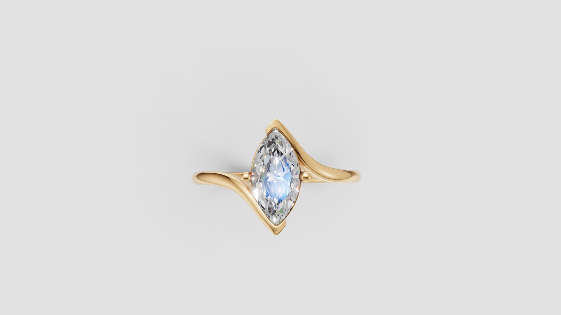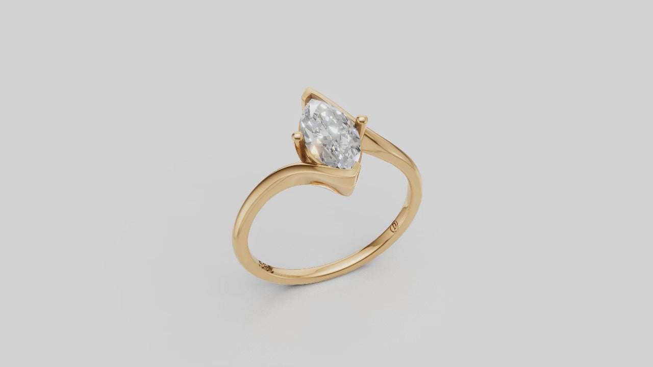 Un diseño delicado y femenino en el cual la banda de dobla para abrazar un diamante de corte marquise. Este deslumbrante anillo es ideal para quienes buscan una pieza elegante pero reservado.