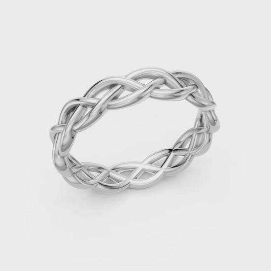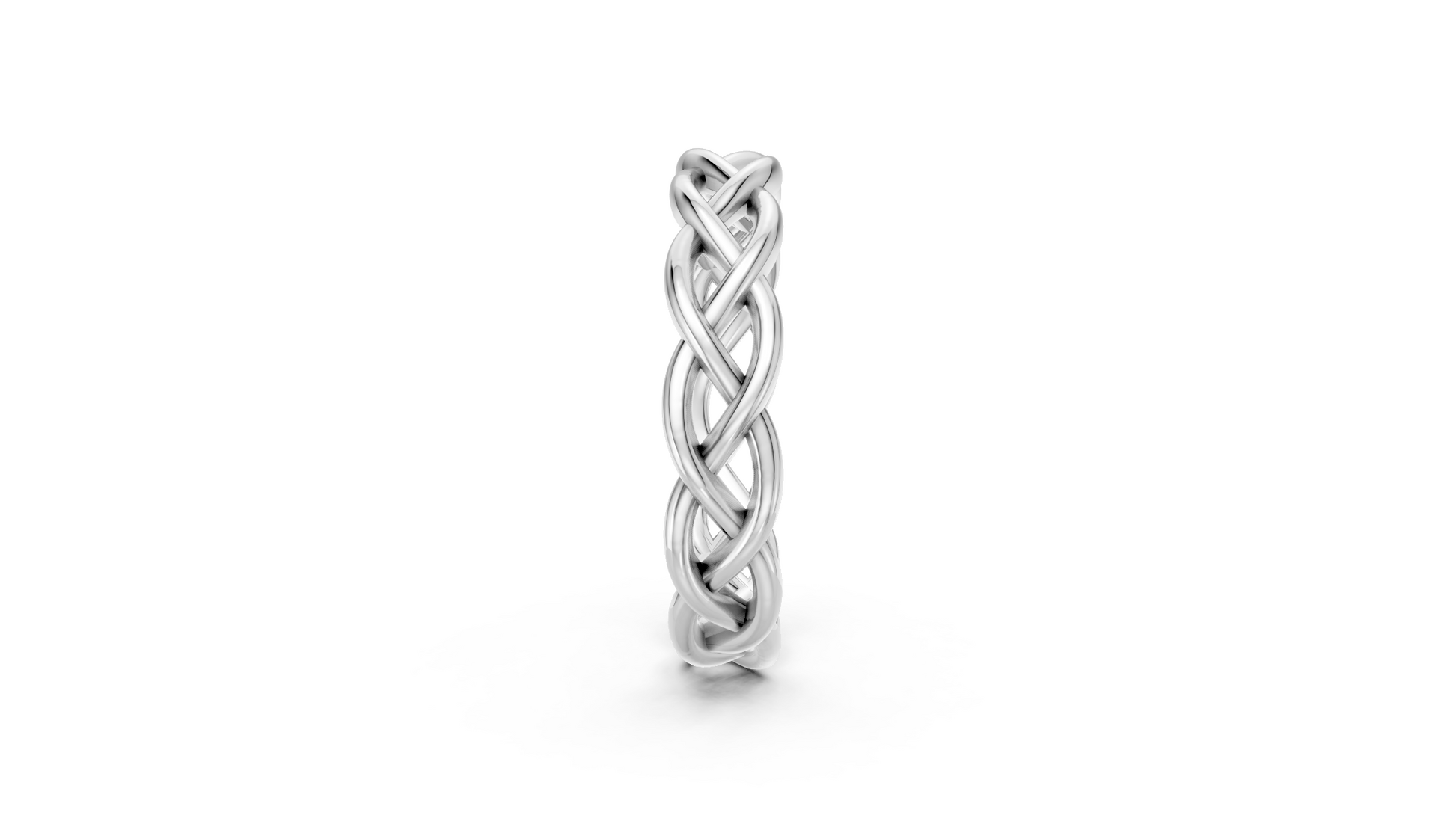 Una hermosa banda en la que 3 hilos de metal se entrelazan holgadamente, formando un delicado patrón. Ideal para quienes prefieren diseños finos y de alta precisión.