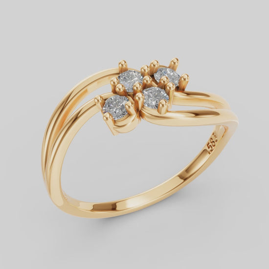 Un delicado anillo que combina la fluidez de su banda curva con 4 diamantes brillantes. Su diseño elegante y significativo lo convierte en el regalo perfecto para celebrar un vínculo eterno.