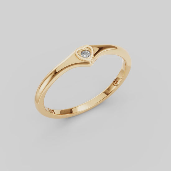 Este anillo presenta un diseño contemporáneo y juvenil. La forma de corazón y el brillante diamante se combinan para crear una pieza que destaca por su estilo moderno y coqueto.
