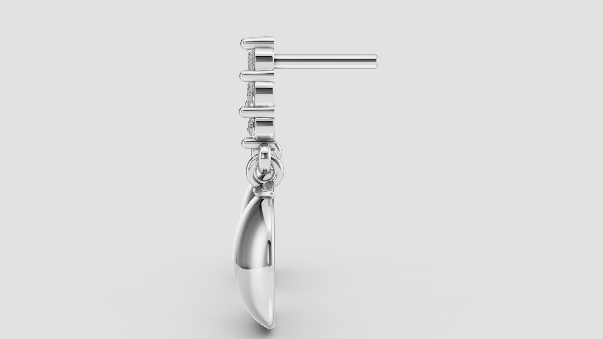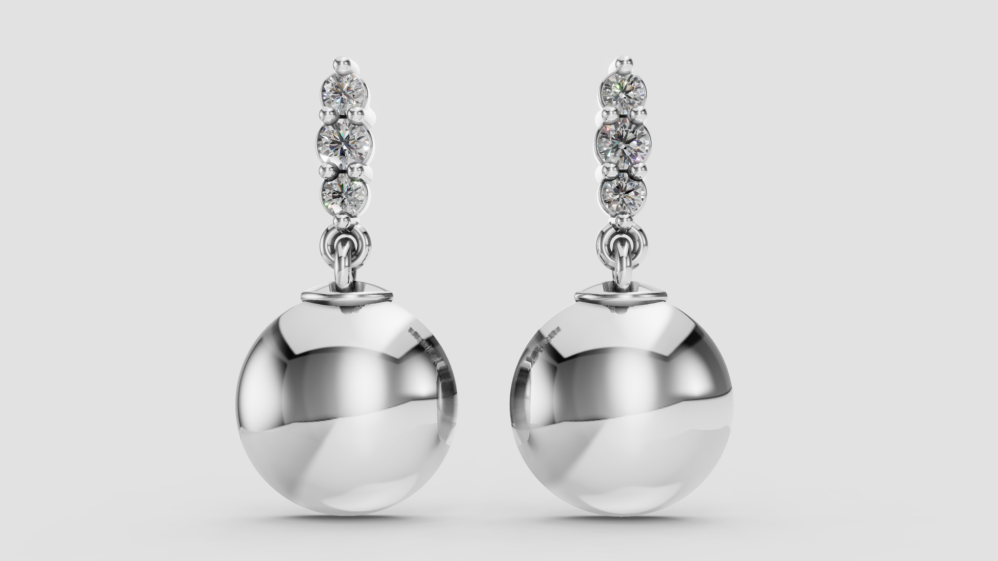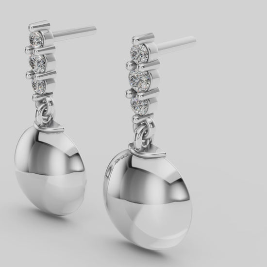 Un coqueto par de aretes que consiste en tres piedras alineadas verticalmente que culminan en una semiesfera de metal. El delicado balanceo de la esfera hace de estoa pequeños pendientes un accesorio llamativo.