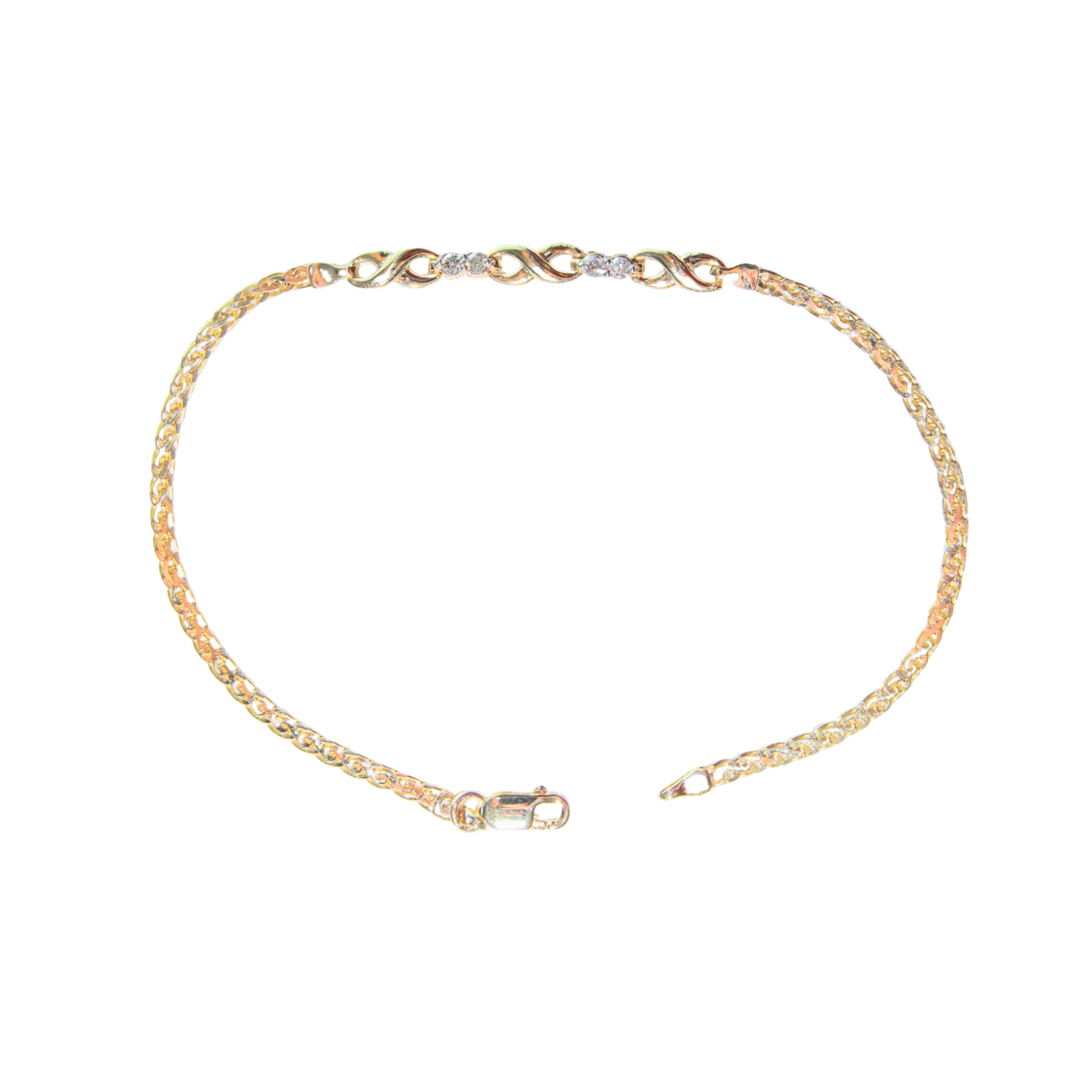 Elegancia eterna en cada detalle. Este brazalete de oro, con eslabones en forma de infinito y 0.15 ct de delicados diamantes, captura la luz con cada movimiento. Un símbolo de amor sin fin, perfecto para regalar o conservar para siempre.
