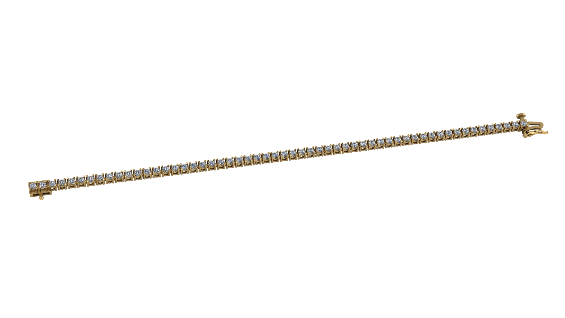 Elegancia pura y brillo infinito. Un brazalete de tenis clásico en oro amarillo, con una línea continua de diamantes redondos engastados individualmente.