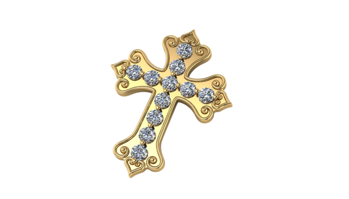 Este colgante de cruz se distingue por sus brazos que terminan en corazones, aludiendo al amor y devoción que los creyentes tienen hacia su religión.