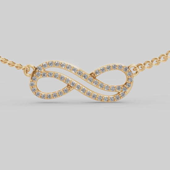 Le damos un giro innovador al clásico símbolo de infinito con este elegante collar de diamantes.